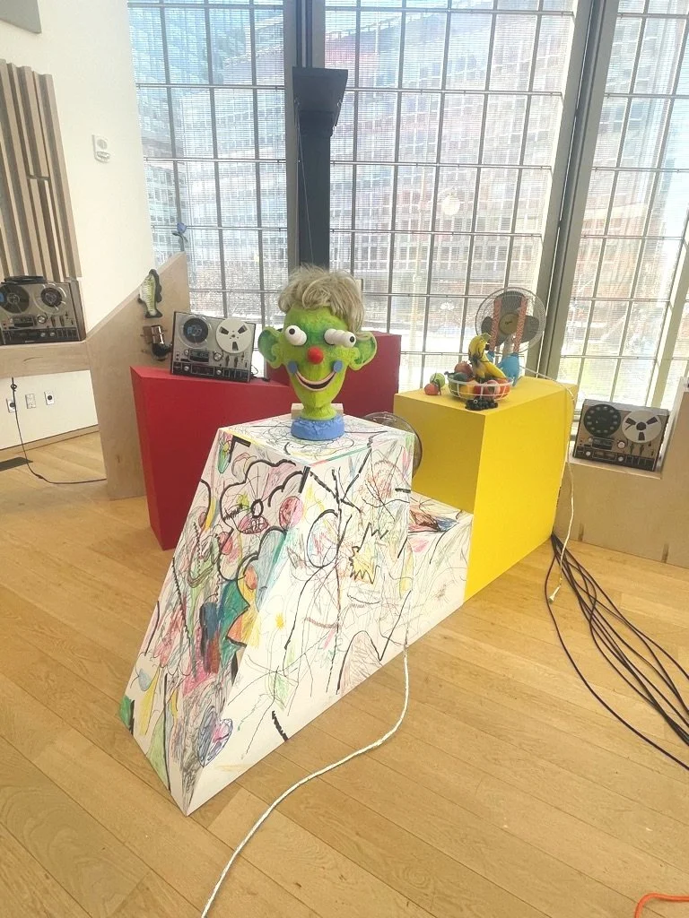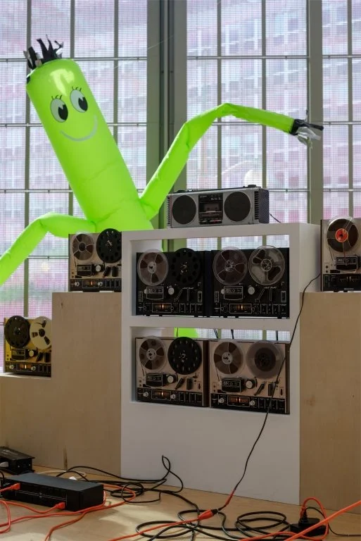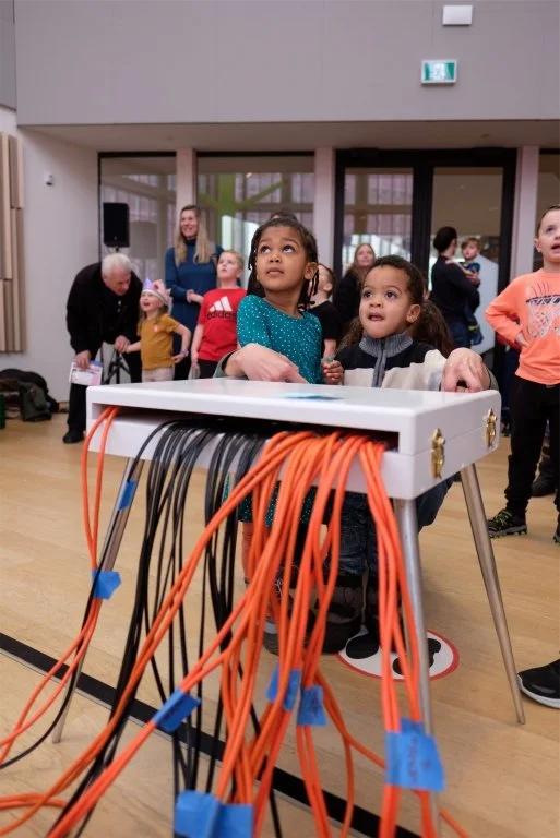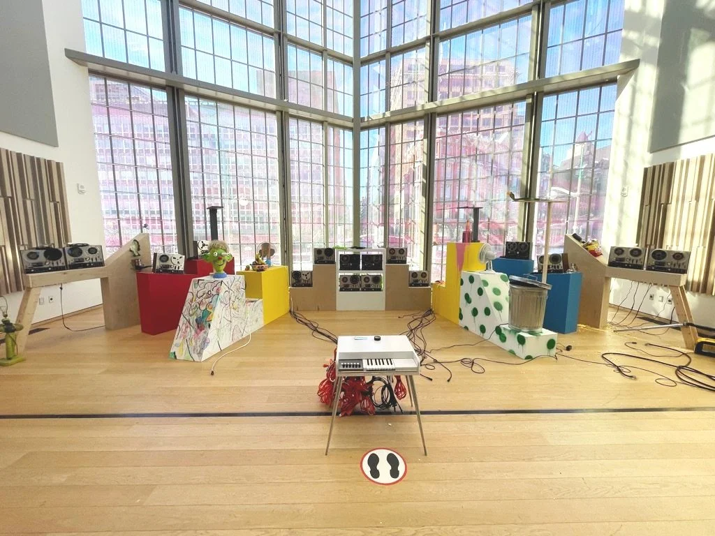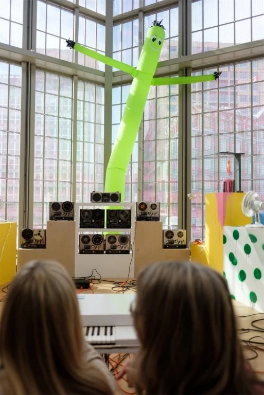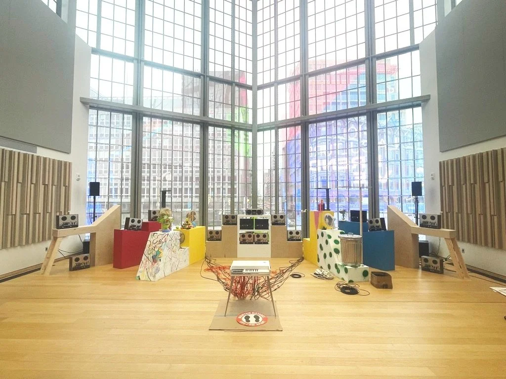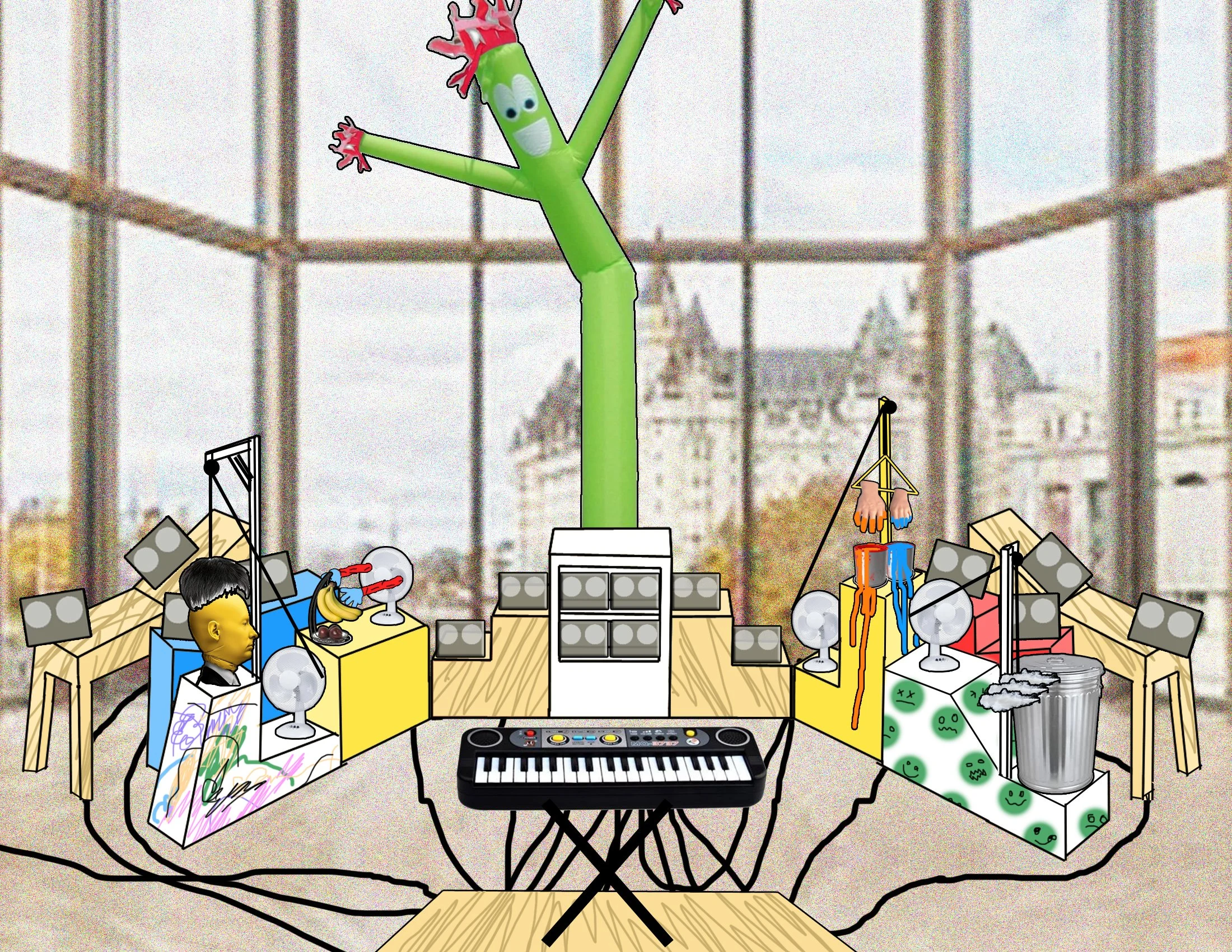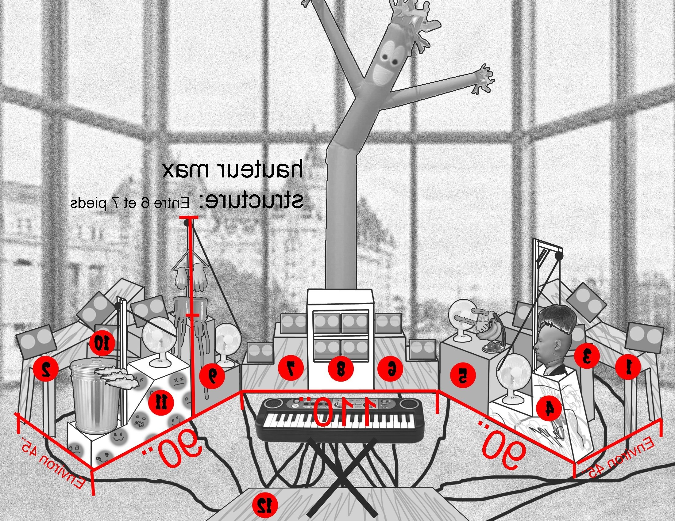 Par les choix d’échantillons sonores l’oeuvre questionne de façon humoristique et subversive les codes des lieux dans lequel elle se trouve ainsi que leurs valeurs hiérarchiques - aux yeux des enfants - en l'occurrence le CNA et - certaines - de ses conventions. Par exemple, en y opposant des échantillons plus classiques provenant d’un(e) chanteur.euse d’opéra par exemple à un échantillon provenant d’un son du corps humain (burps, pets, gargouillis) j’espère mettre en valeur cette intention. Elle invite aussi à une réflexion sur la notion d'«utilité» intrinsèque des objets en proposant un dispositif valorisant le bonheur simple et direct plutôt que son efficience, tentant ainsi de faire un contrepoids à la recherche d’hyper-efficacité omniprésente qui affecte de plus en plus notre - et celle des enfants - capacité d’émerveillement face au monde naturel. L’oeuvre se veut une sorte d’hymne à l’inutilité, à l’innéficience, à la décroissance.