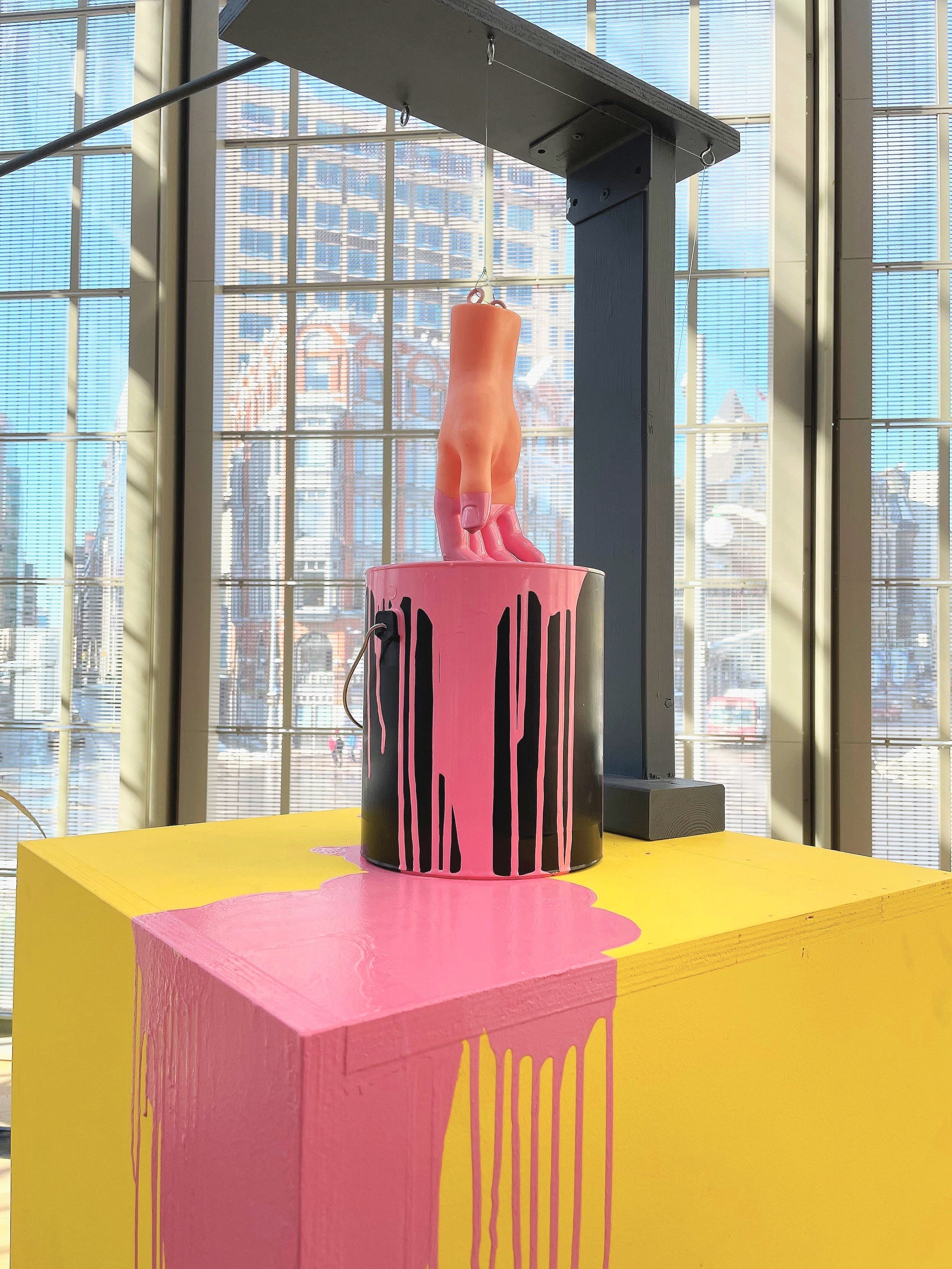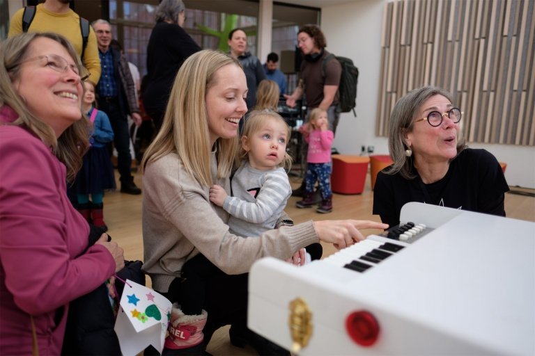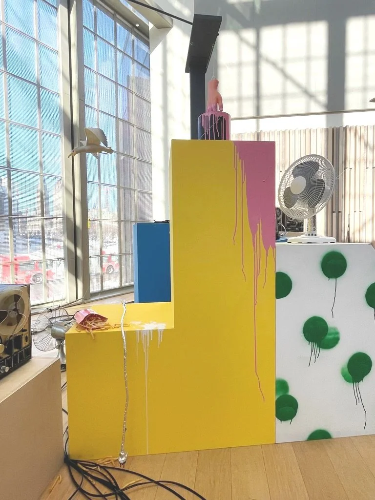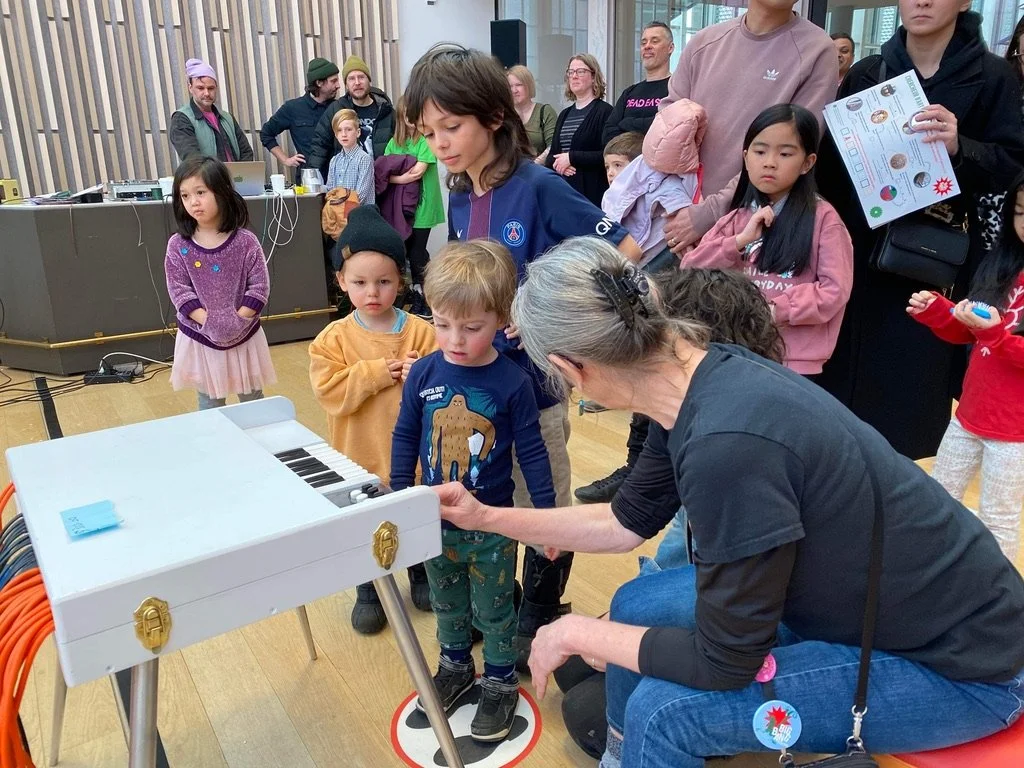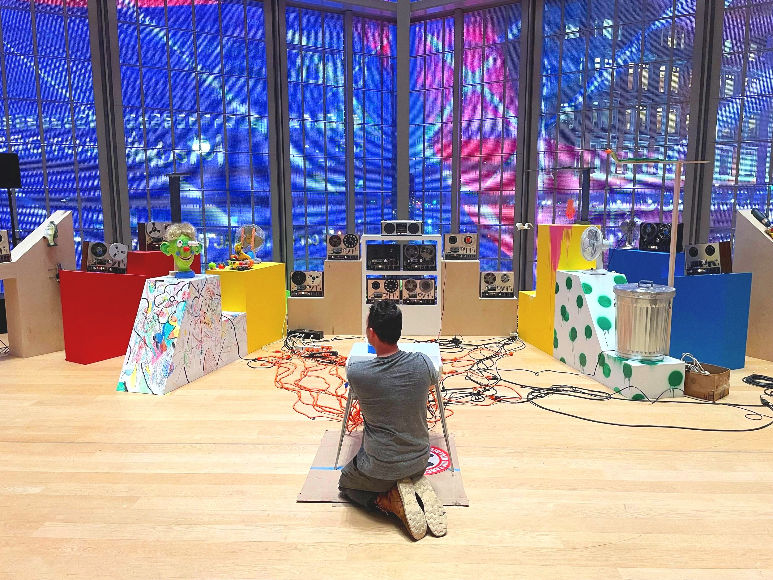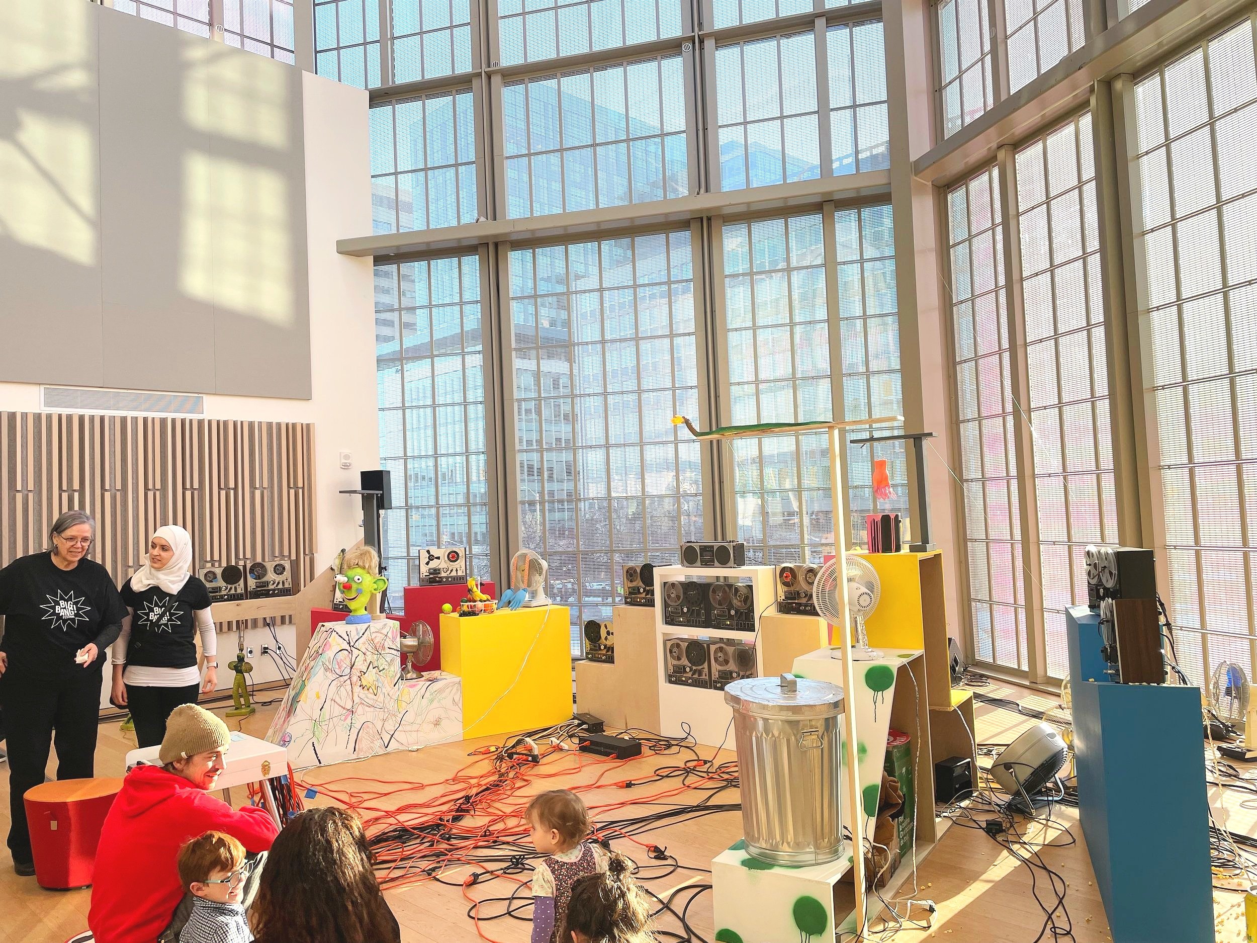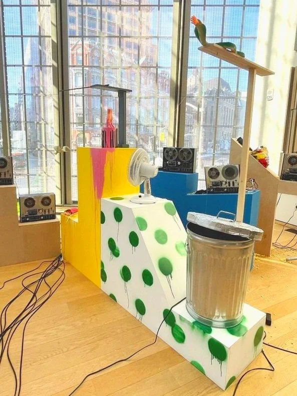 Par les choix d’échantillons sonores l’oeuvre questionne de façon humoristique et subversive les codes des lieux dans lequel elle se trouve ainsi que leurs valeurs hiérarchiques - aux yeux des enfants - en l'occurrence le CNA et - certaines - de ses conventions. Par exemple, en y opposant des échantillons plus classiques provenant d’un(e) chanteur.euse d’opéra par exemple à un échantillon provenant d’un son du corps humain (burps, pets, gargouillis) j’espère mettre en valeur cette intention. Elle invite aussi à une réflexion sur la notion d'«utilité» intrinsèque des objets en proposant un dispositif valorisant le bonheur simple et direct plutôt que son efficience, tentant ainsi de faire un contrepoids à la recherche d’hyper-efficacité omniprésente qui affecte de plus en plus notre - et celle des enfants - capacité d’émerveillement face au monde naturel. L’oeuvre se veut une sorte d’hymne à l’inutilité, à l’innéficience, à la décroissance.