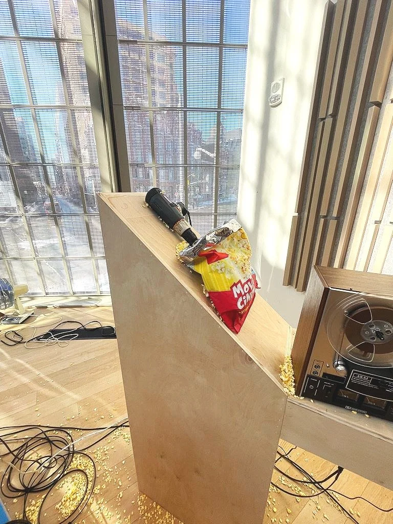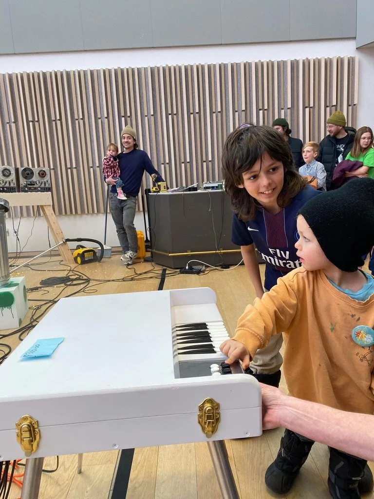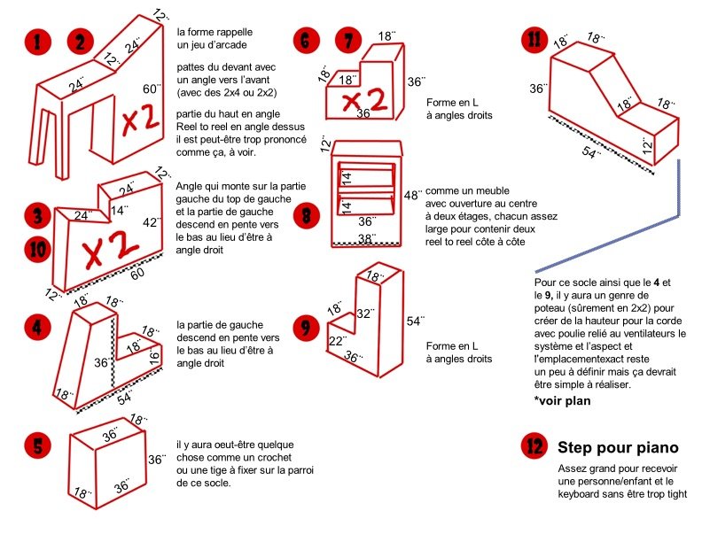 Ce projet en développement est une collaboration entre Pierre-Luc Clément (idée originale), Marisa Gallemit (scénographie), Hugo Gaudet-Dion (scénographie) et Louis-Philippe Robillard (développement technique & construction des décors). Il consiste en une installation sonore interactive pensée spécifiquement pour le Festival Big Bang! et son jeune public. Elle propose une expérience ludique à travers un dispositif musical analogue et mécanique conçu pour être joué en direct par les participants. Inspiré entre autres par le légendaire Mellotron, l’oeuvre installative propose un sytème utilisant les notes d’un clavier mécanique (de type orgue) pour déclencher en temps réel des échantillons sonores imprimés sur des ruban magnétique via une série de magnétophones. Un genre de «Mellotron» géant complètement fonctionnel mais plutôt bancal. La scénographie de par sa disposition, propose aux utilisateurs une expérience analogue à celui d’un chef d’orchestre.